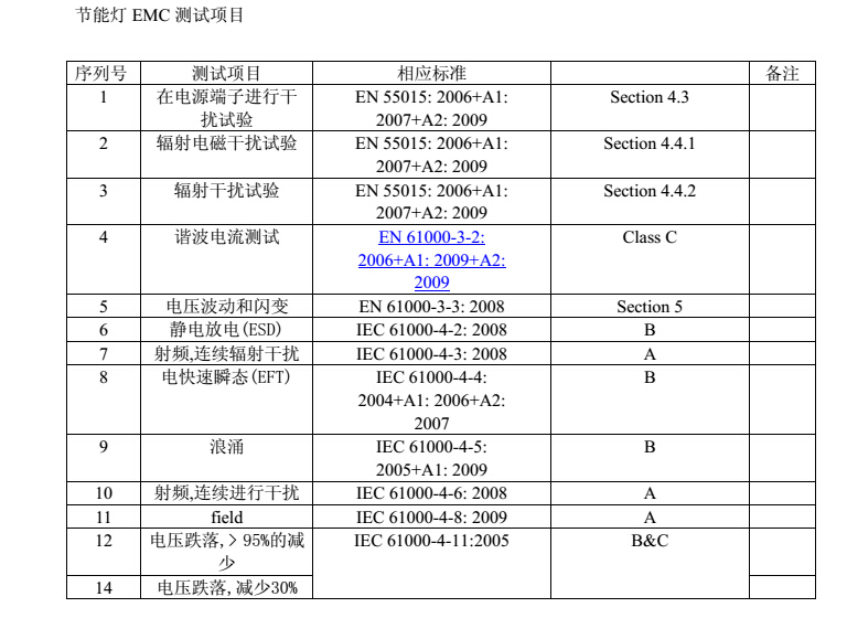 節(jié)能燈CE認證由EMC和LVD(安規(guī))兩部分組成。節(jié)能燈的EMC和普通燈具是一樣的,EN55015.EN61547,也就是燈具CE認證在EMC方面是相同的,只是在LVD安規(guī)部分大同小異。一般測試工程師會根據(jù)產(chǎn)品的實際情況來劃分測試標準。認證時會對認證產(chǎn)品進行這兩項的單獨測試和出具測試報告,并出具證書。