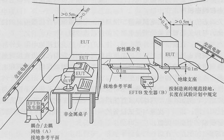 電快速瞬變脈沖群抗擾度試驗可以分成在實驗室進行的試驗和在設(shè)備最終安裝條件下對設(shè)備進行的安裝后試驗。優(yōu)先采用實驗室進行的試驗。