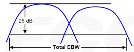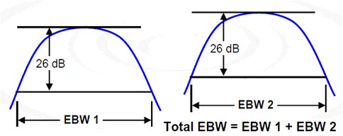(2) 如果這兩個非相鄰信號沒有重疊在一起,那么26 dB的EBW是兩個非相鄰信號各個26dB EBW之和。