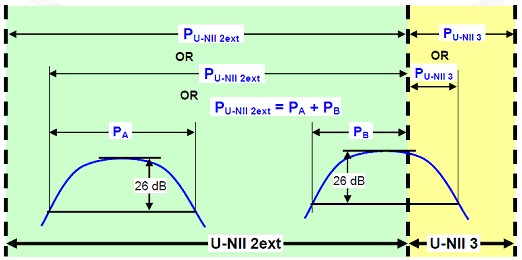 (3) 如果有一個信號跨越兩個UNII的頻帶,這時必須以被跨越的頻率做分隔,來判斷在不同UNII頻段的26dB EBW。