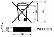 - 表明電池需分類回收的帶叉垃圾桶標(biāo)志;