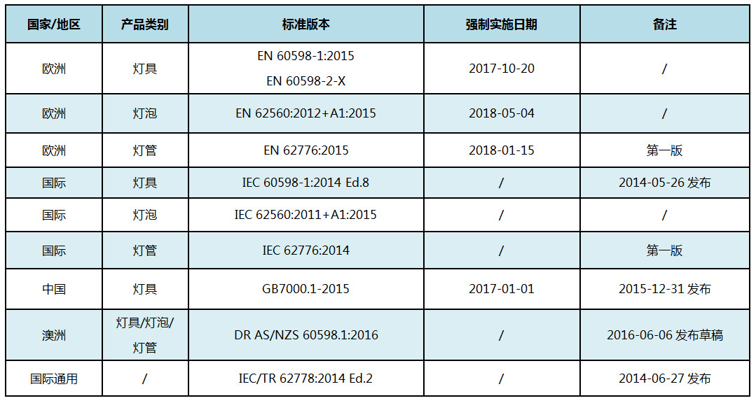 一、藍(lán)光危害評(píng)估涉及標(biāo)準(zhǔn)及實(shí)施日期
