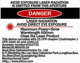 :激光器出口光功率在5~500mw的激光,直接在光束內(nèi)對(duì)視會(huì)對(duì)眼睛視網(wǎng)膜造成嚴(yán)重傷害,使用時(shí)不可直視光束或高反射光束。