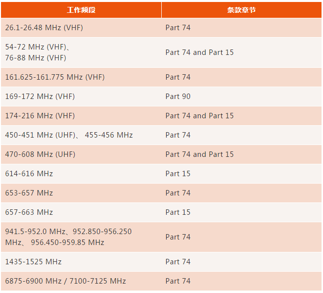 2017年10月3日FCC 委員會公布了工作在條款74、15和90章節(jié)無線麥克風最新技術(shù)法規(guī)要求,具體如下。新要求主要是移除了頻段617-652 MHz / 663-698 MHz。